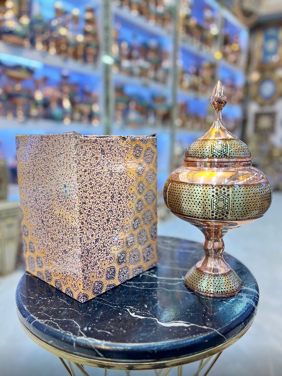 شکلات خوری پایه دار مس و خاتم سیم برنجی